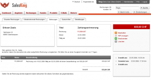 Die Detailansicht unterscheided sich kaum von den anderen Dokumententypen(Rechnung/Angebot/Gutschrift). Im Formular werden die Unterschiede schon deutlicher, denn es gibt keine Mehrwertsteuer, Rabatt oder Mengenfelder. Eine Mahnung hat lediglich zwei Posten: Erstens die Rechnung zu der die Mahnung gehört und zweitens die Mahngebühren.